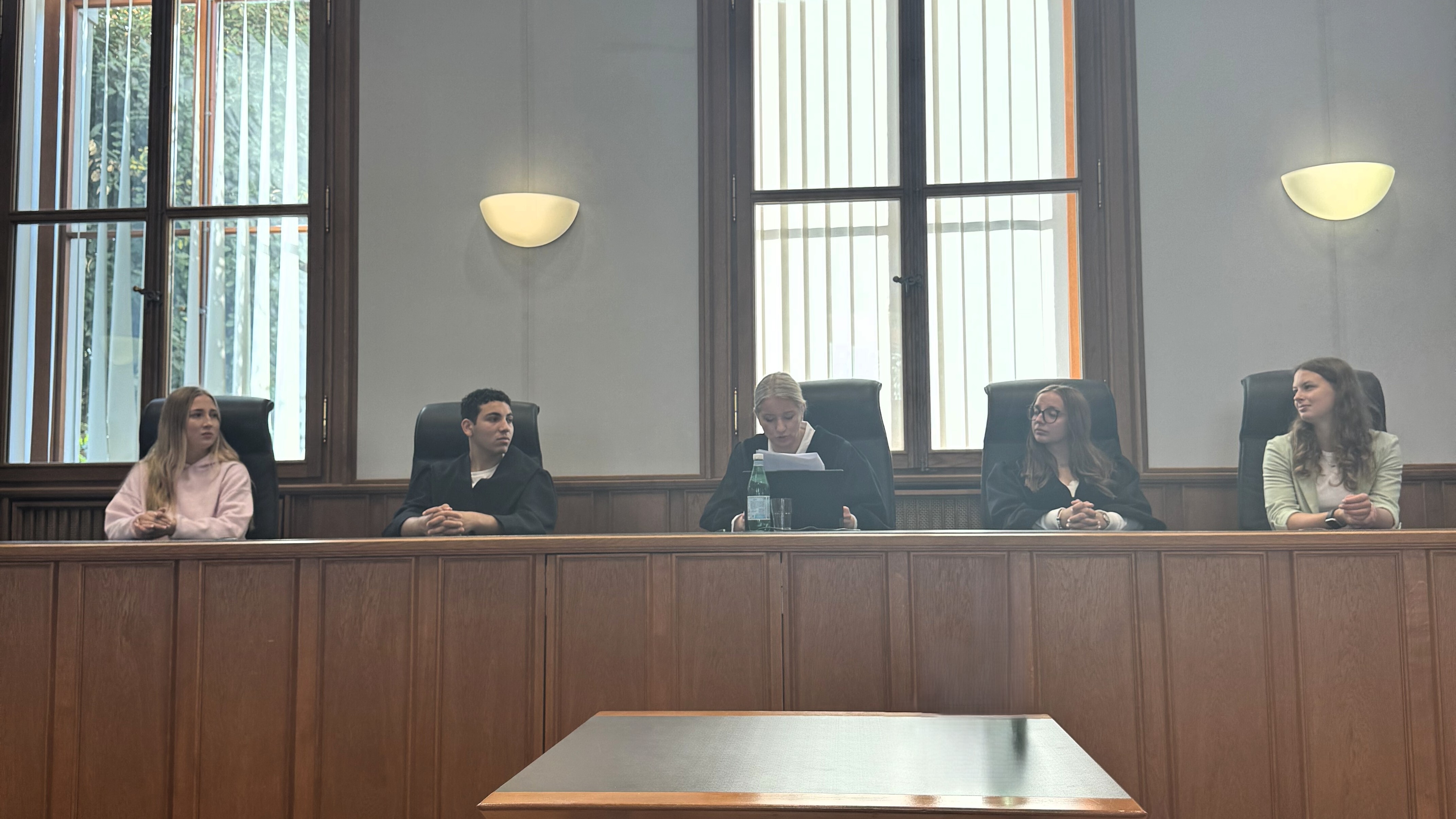 Ein besonderes Highlight in diesem Jahr: Die niedersächsische Justizministerin Frau Dr. Kathrin Wahlmann leitete persönlich als Richterin – zusammen mit vier Schülerinnen und Schülern als „Beisitzern“ und „Schöffen“ - die Verhandlung.